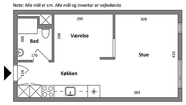 Udlejning sker via Studiebolig Aalborg, Rendsburggade 10 A, 9000 Aalborg. Tlf. 99 31 42 98.